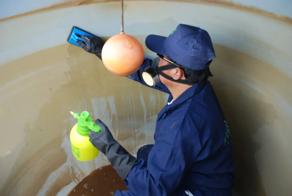 بعد التنظيف، يتم تجفيف الخزان بالكامل وتهويته للتخلص من الروائح الكريهة المتبقية.